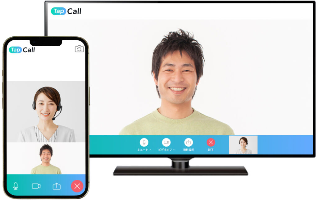オンライン接客ツールのTapCall(タップコール)とは、映像と音声によるビデオ通話を通じて接客対応ができるツールです。受付カウンターに設置したQRコード、もしくはホームページのリンクからオンラインで接客やサポートを受け付けることができます。